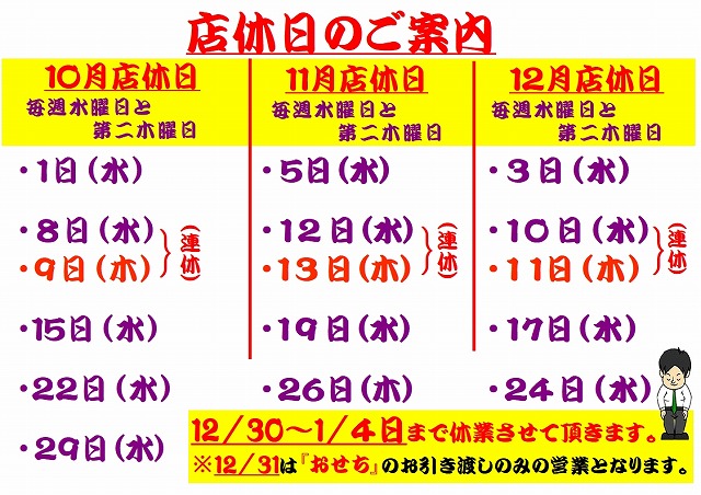 (12/31は『おせち』のお引き渡しのみの営業となります。)